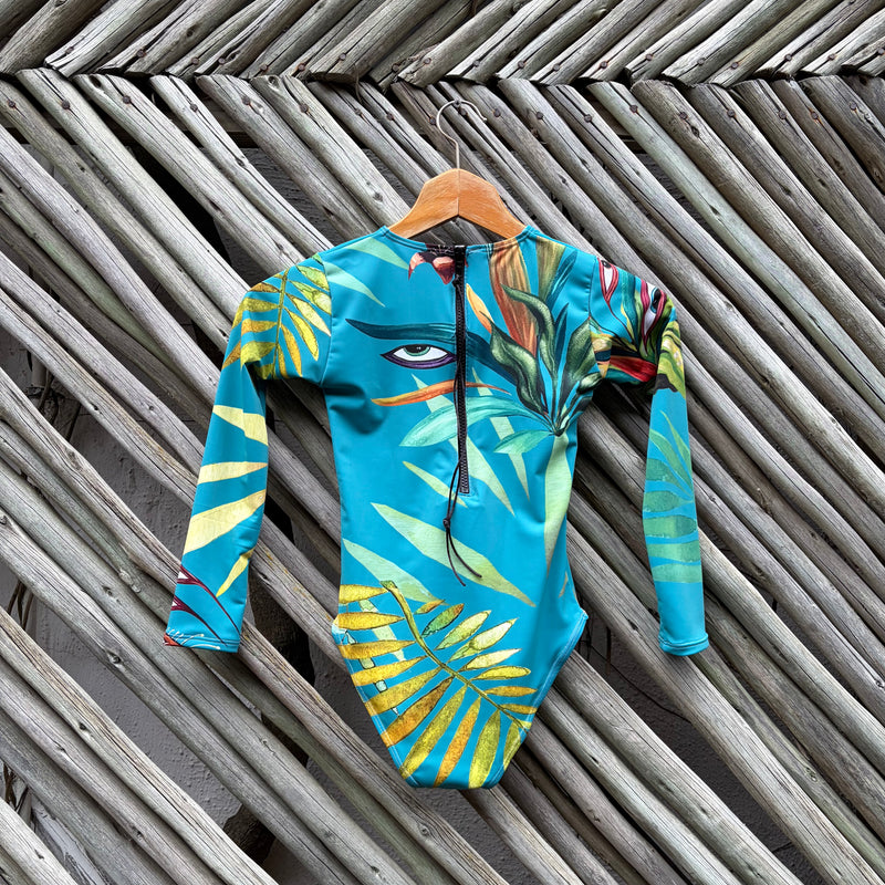 Love the long sleeves - hate sunburn! This is the perfect top for a lovely time in the sun and the bottoms are such a comfy fit! I suggest sizing one down since they are double lined without an elastic. I usually am a S, but the XS, as recommended by the owner, was perfect! Love my new cozzi, cant wait to take it on holiday! :D