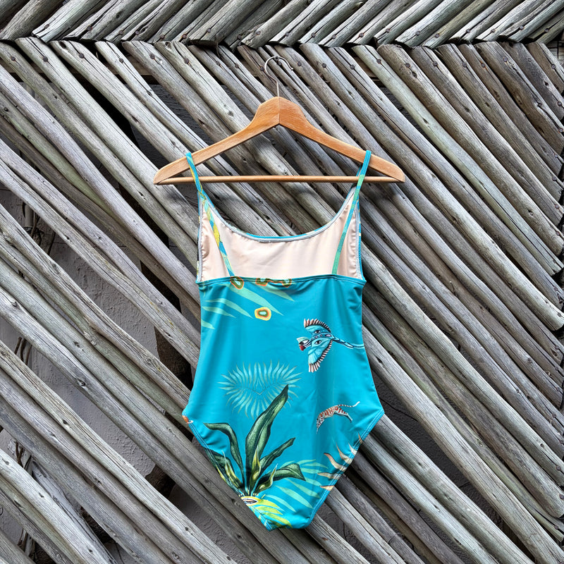 Bronze Teal Sea Sleeveless Front Zip Swimsuit